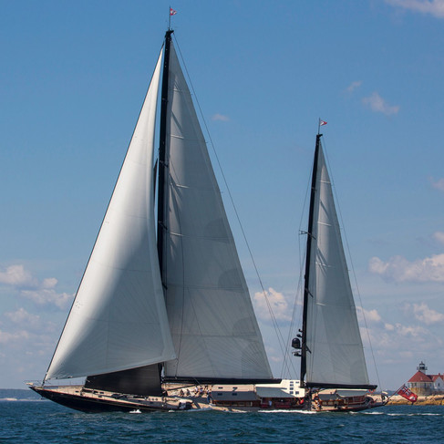 At 54.8 m/180 ft., Marie is the largest Shipyard Cup participant to date. She was designed by Hoek Design Naval Architects and was launched by Vitters Shipyard in 2010. She's fun to watch move through the water and stands out from the rest with a black hull and enormous black spinnaker.